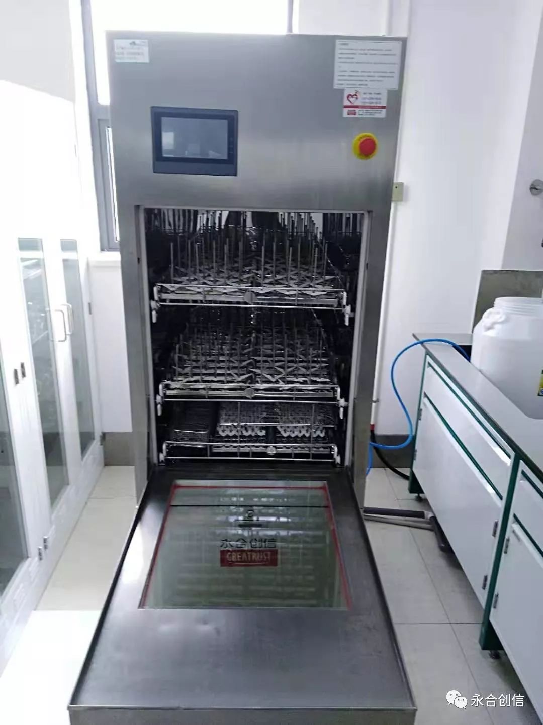 永合創(chuàng)信全自動器皿清洗機針對不同特性、不同行業(yè)的特征物的清洗,有不同的清洗程序,且用戶還可以自定義添加清洗程序。根據(jù)玻璃器皿要求選擇對應(yīng)的清洗程序清洗,全程自動化完成。