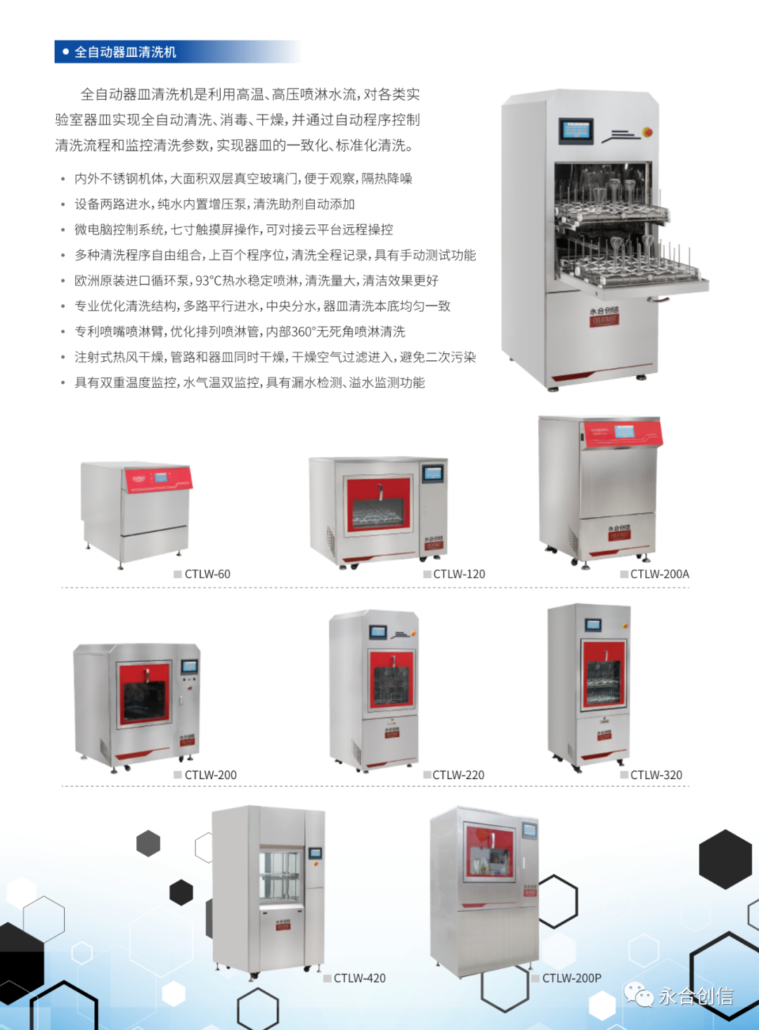做實(shí)驗(yàn)時(shí)最頭疼的是什么?但凡在實(shí)驗(yàn)室工作過(guò)的博士碩士都知道,費(fèi)了半天勁沒(méi)有整出理想實(shí)驗(yàn)結(jié)果的時(shí)候是很讓人鬧心抓狂的,如果費(fèi)了半天勁數(shù)據(jù)也不好,還有一堆“疑難后事”要處理:一堆瓶瓶罐罐沾滿了各種死死黏附的試劑,刷也刷不下來(lái),那簡(jiǎn)直要了命,罷工不干的心情都有了。 [1] 清洗耗時(shí)耗力,增加了人力成本,影響整體實(shí)驗(yàn)效率和進(jìn)度。 清洗后潔凈度不可重復(fù)、不能追溯,可能會(huì)影響實(shí)驗(yàn)數(shù)據(jù)的真實(shí)性、準(zhǔn)確性。 [2]不符合現(xiàn)代實(shí)驗(yàn)室標(biāo)準(zhǔn)要求中的標(biāo)準(zhǔn)化、數(shù)據(jù)可記錄、可追溯等。 [3]實(shí)驗(yàn)室玻璃器皿殘留物成分復(fù)雜,強(qiáng)酸、強(qiáng)堿、鉻酸(六價(jià)鉻對(duì)人體的傷害不可逆)等都有一定的危險(xiǎn)性。再加上用來(lái)洗滌的化學(xué)清洗劑,這些物質(zhì)都可能給清洗人員造成傷害。 [4]實(shí)驗(yàn)室玻璃器皿屬于易碎品,再加上諸如移液管、滴定管、培養(yǎng)皿等器皿自身較薄,清洗過(guò)程中很容易破碎傷害到清洗人員,如果有病毒殘留甚至?xí)?dǎo)致清洗人員受感染。 永合創(chuàng)信全自動(dòng)洗瓶機(jī) 擁有專利清潔技術(shù)+人工智能云平臺(tái),幫助客戶建立完整清潔驗(yàn)證體系服務(wù),為客戶提供高級(jí)清洗解決方案。 永合創(chuàng)信實(shí)驗(yàn)室洗瓶機(jī)保證了清洗質(zhì)量的一致性和高清潔度。清洗效果使實(shí)驗(yàn)室結(jié)果得到了保障,大大提高了工作效率。可清洗復(fù)雜的器皿,如移液管、集氣管、液相小瓶等,一方面節(jié)省了人力成本,還解決了高強(qiáng)酸污染和人員傷害問(wèn)題。 CTLW系列全自動(dòng)器皿清洗機(jī)是永合創(chuàng)信的核心產(chǎn)品之一,適用于制藥企業(yè)、疾控系統(tǒng)、科研院所、環(huán)境保護(hù)、稅務(wù)系統(tǒng)、醫(yī)院、石化系統(tǒng)、電力系統(tǒng)等各類實(shí)驗(yàn)室對(duì)進(jìn)樣瓶、試管、燒杯、移液管、三角瓶、容量瓶等器皿的清洗、干燥。