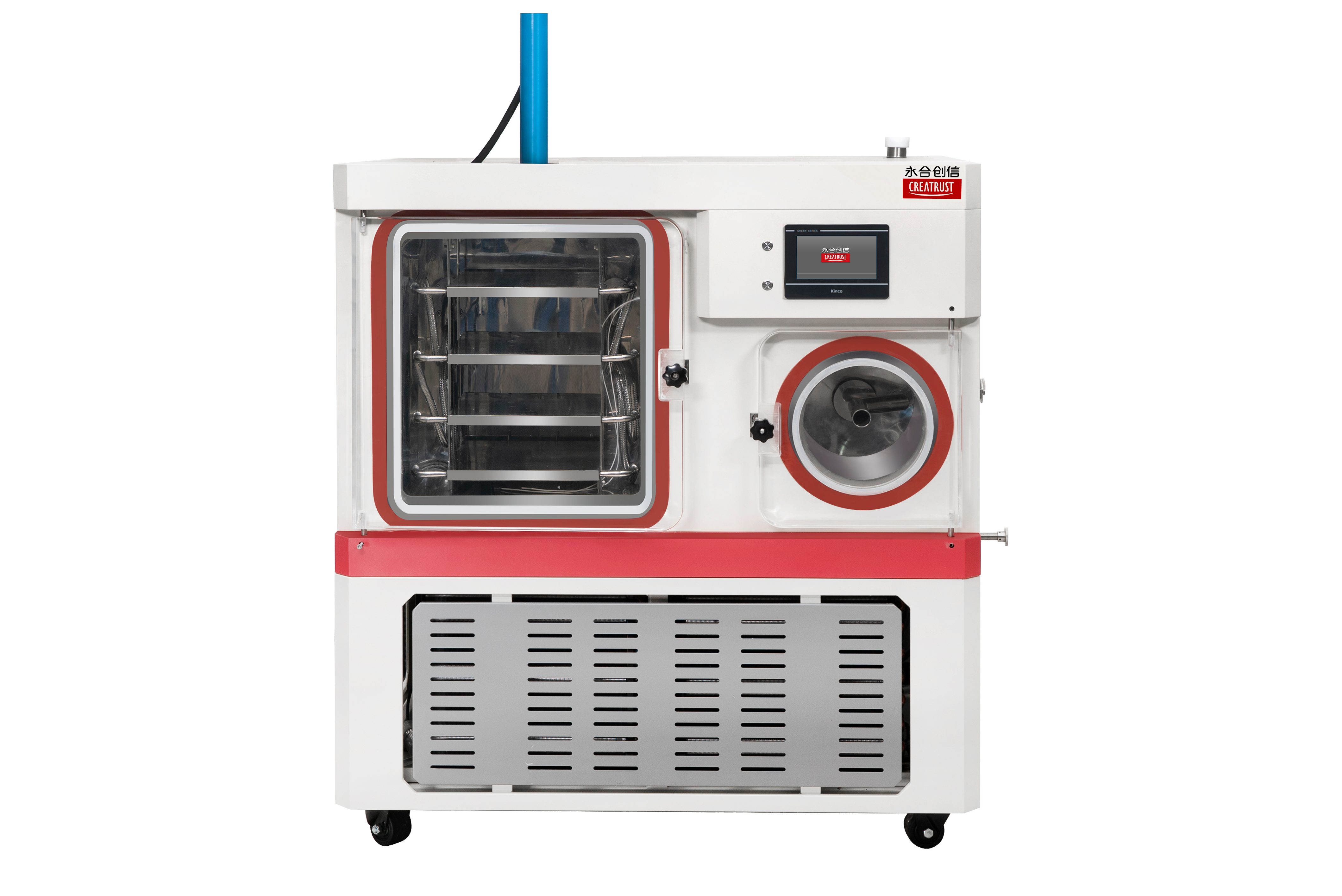冷阱和干燥室分體結(jié)構(gòu)設(shè)計(jì),捕水能力強(qiáng),干燥時(shí)間短;全不銹鋼設(shè)計(jì),耐腐蝕易清潔,每層隔板配備溫度傳感器,可以監(jiān)測(cè)每層物料的溫度及變化特性;