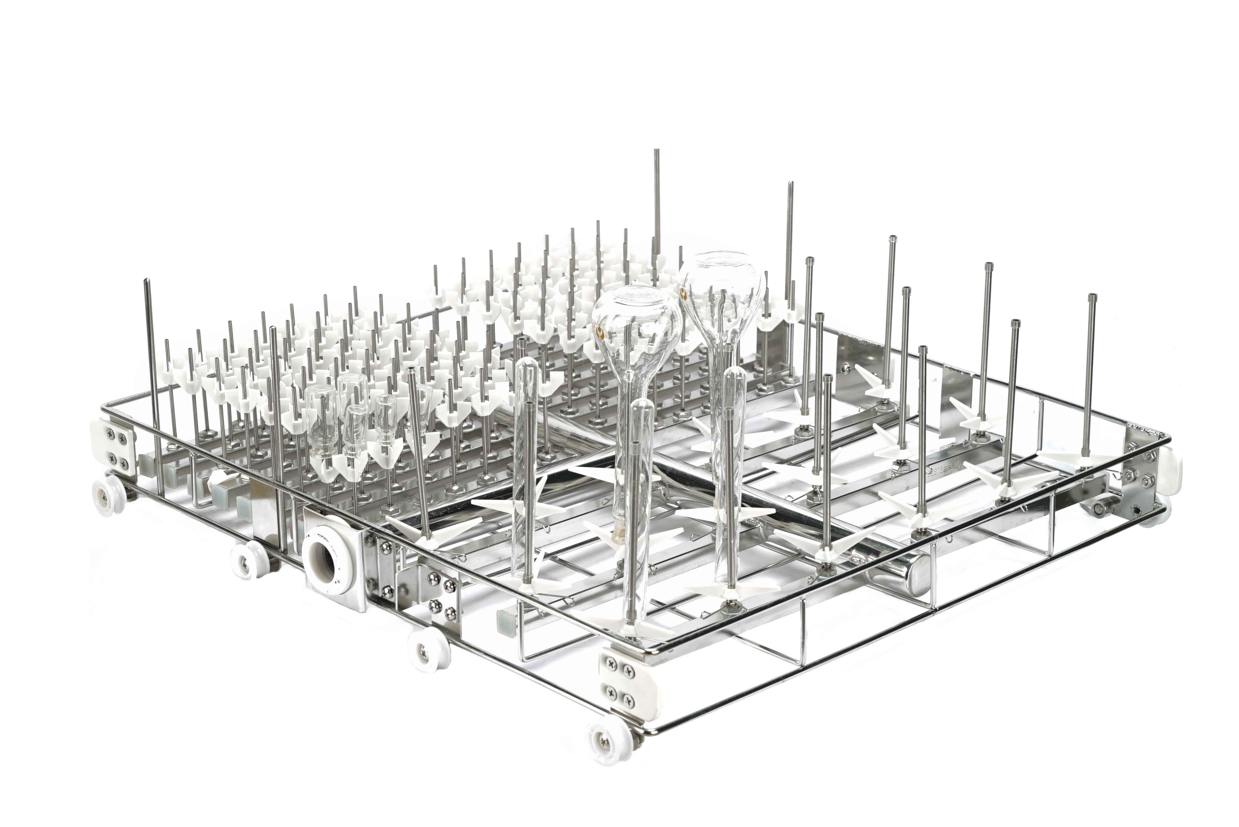 130位注射式清洗架,130個(gè)注射式噴淋管和可調(diào)節(jié)托架可清洗112位色譜進(jìn)樣瓶、試管等可清洗18位20-500ml容量瓶、三角瓶、燒杯等。