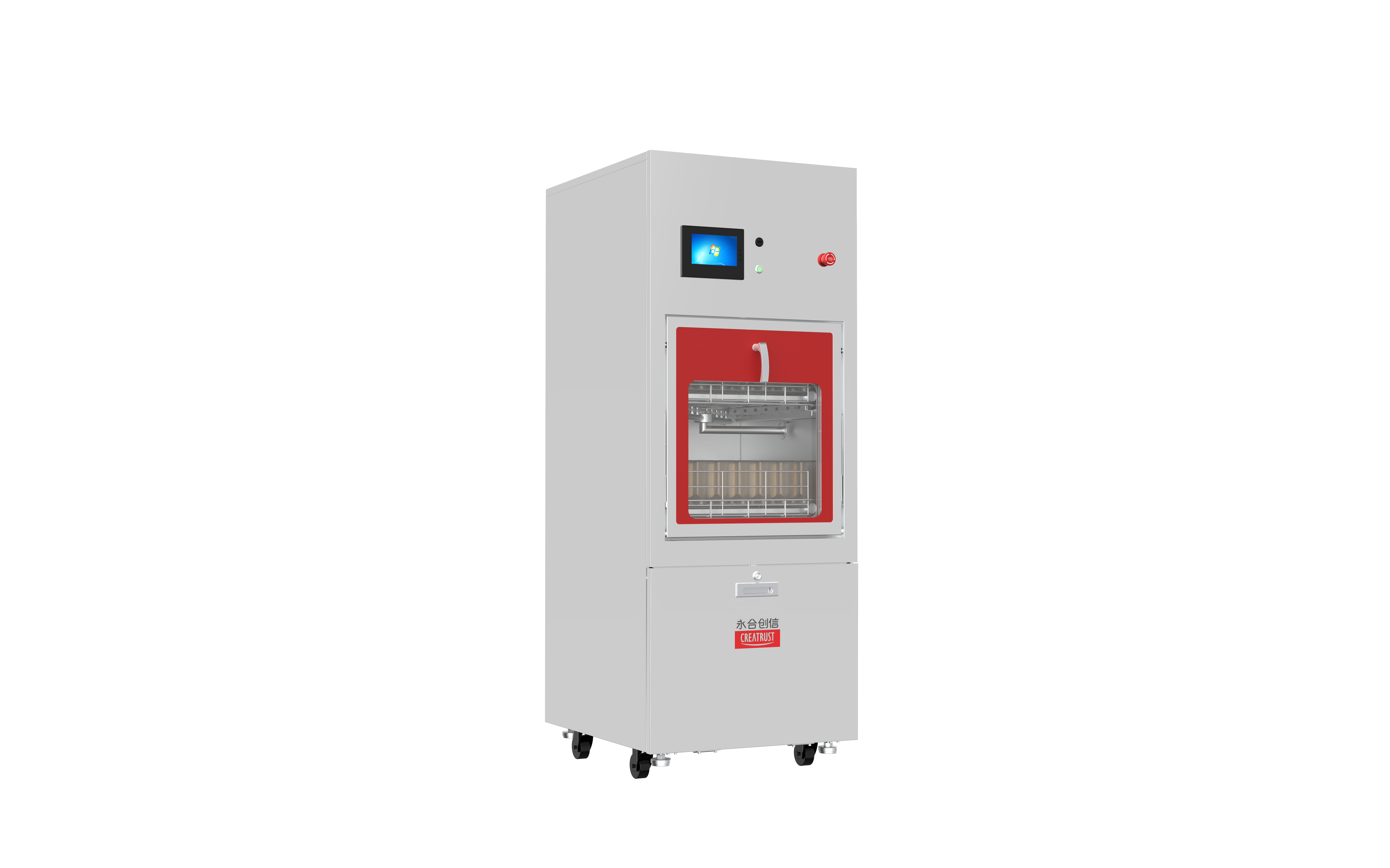 ●設(shè)備清洗啟動(dòng)后,門(mén)體自動(dòng)鎖緊,無(wú)法開(kāi)門(mén);只有在全部流程結(jié)束,降溫后方可開(kāi)啟艙門(mén);
